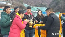 經過一天的長途跋涉,翻山越嶺,11月21日上午10:00點到達馬爾康市日部鄉,日部鄉村民為都得利管業一行獻上了象征藏地較高禮儀的哈達和青稞酒。
